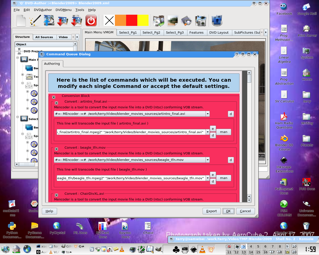 First of all, it should be appreciated that there is a command-line based program that “compiles” DVDs from XML-based mastering files, which we could theoretically use directly. This is “dvdauthor”. Like FFMPEG, it is a bear to use on the command line, in practice, and writing the XML control files for it with only a text editor would be a very challenging job, requiring a lot of special knowledge of the format.