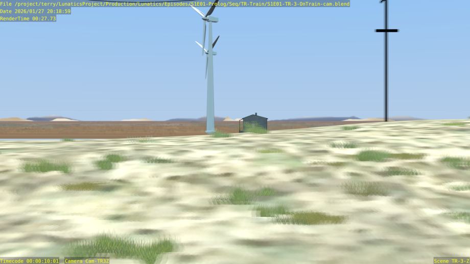 Right at the end of the month, I did get back to doing a small animation project. I set up cameras and rendered background plates for the outside scenery that is seen outside the windows during the interior train shots.