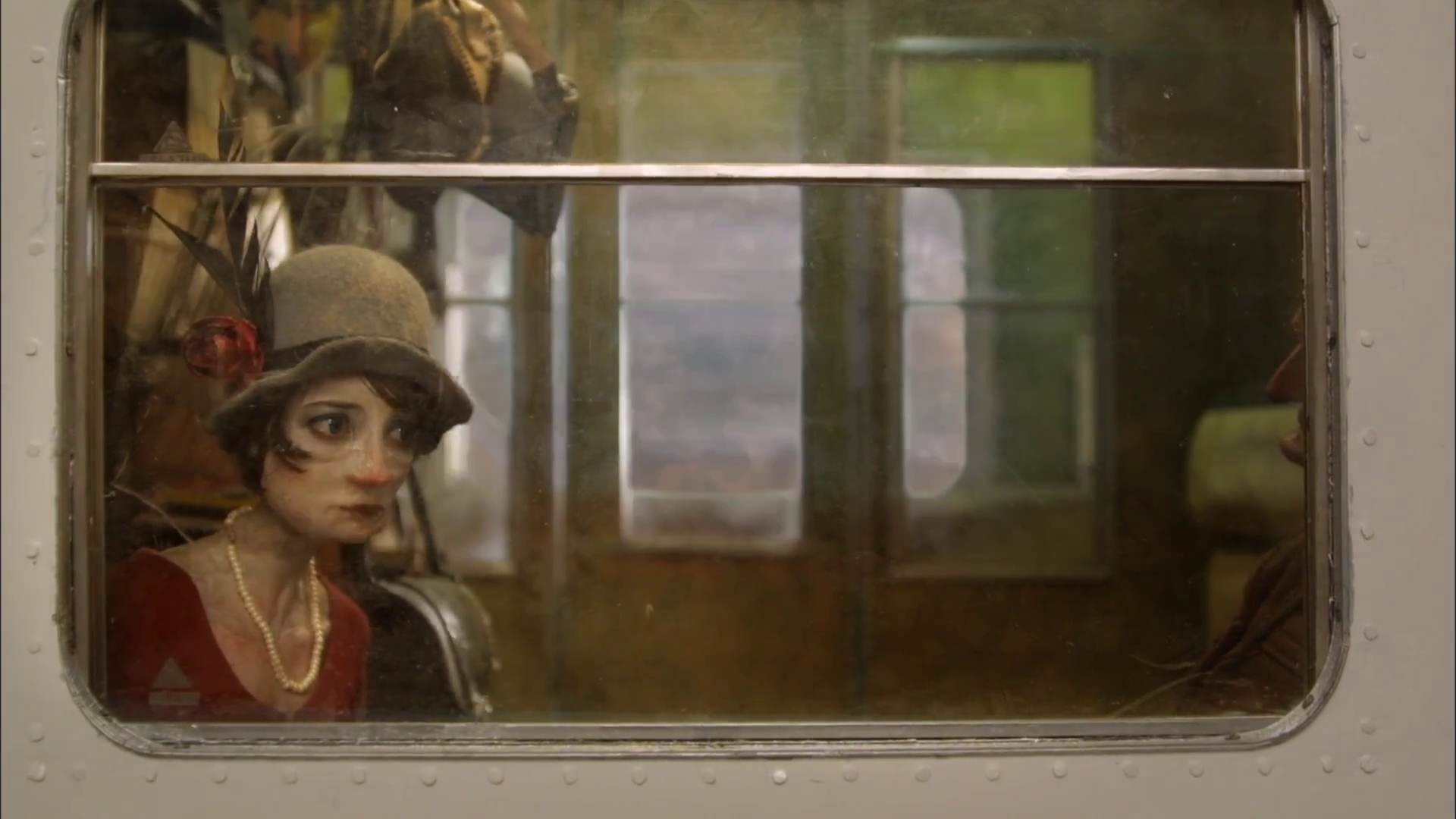 Still from Madame Tutle-Putlie, of the character looking out the train window.